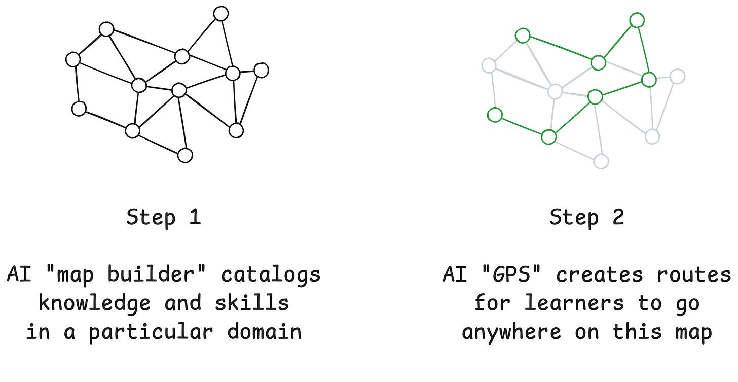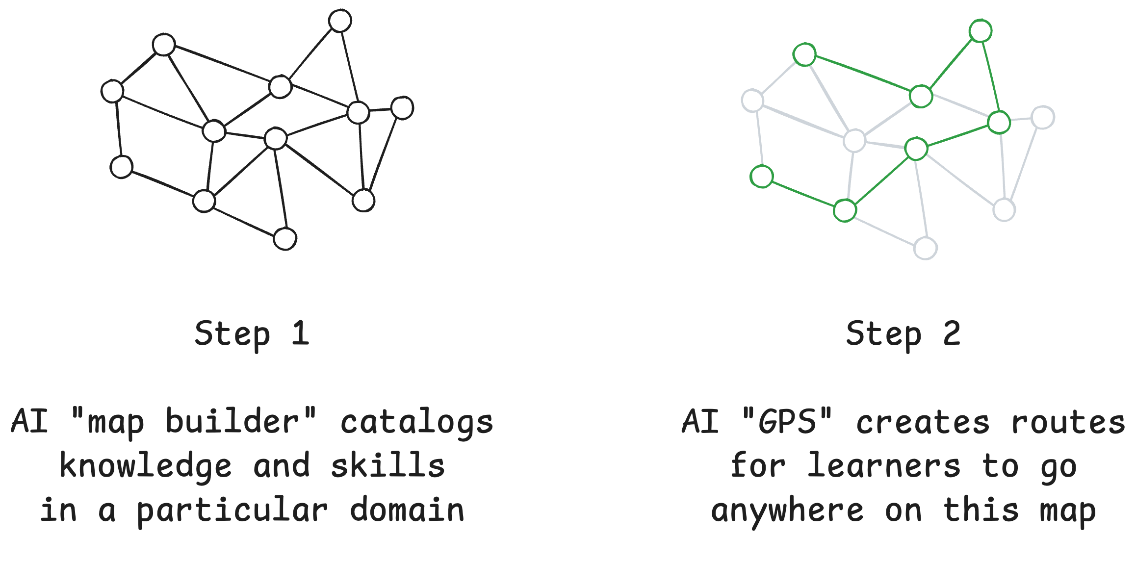 A skill tree like this, while incredibly useful for both directing the learning itself and measuring progression through it, has been a largely implicit construct in almost all forms of learning. And that’s not an indictment of teachers—it would be a herculean effort to construct by hand, yet not very useful without being able to leverage its structure for teaching. Yet, when AI can help us rapidly build this skill tree, we can finally address a critical part of the 2-sigma problem.