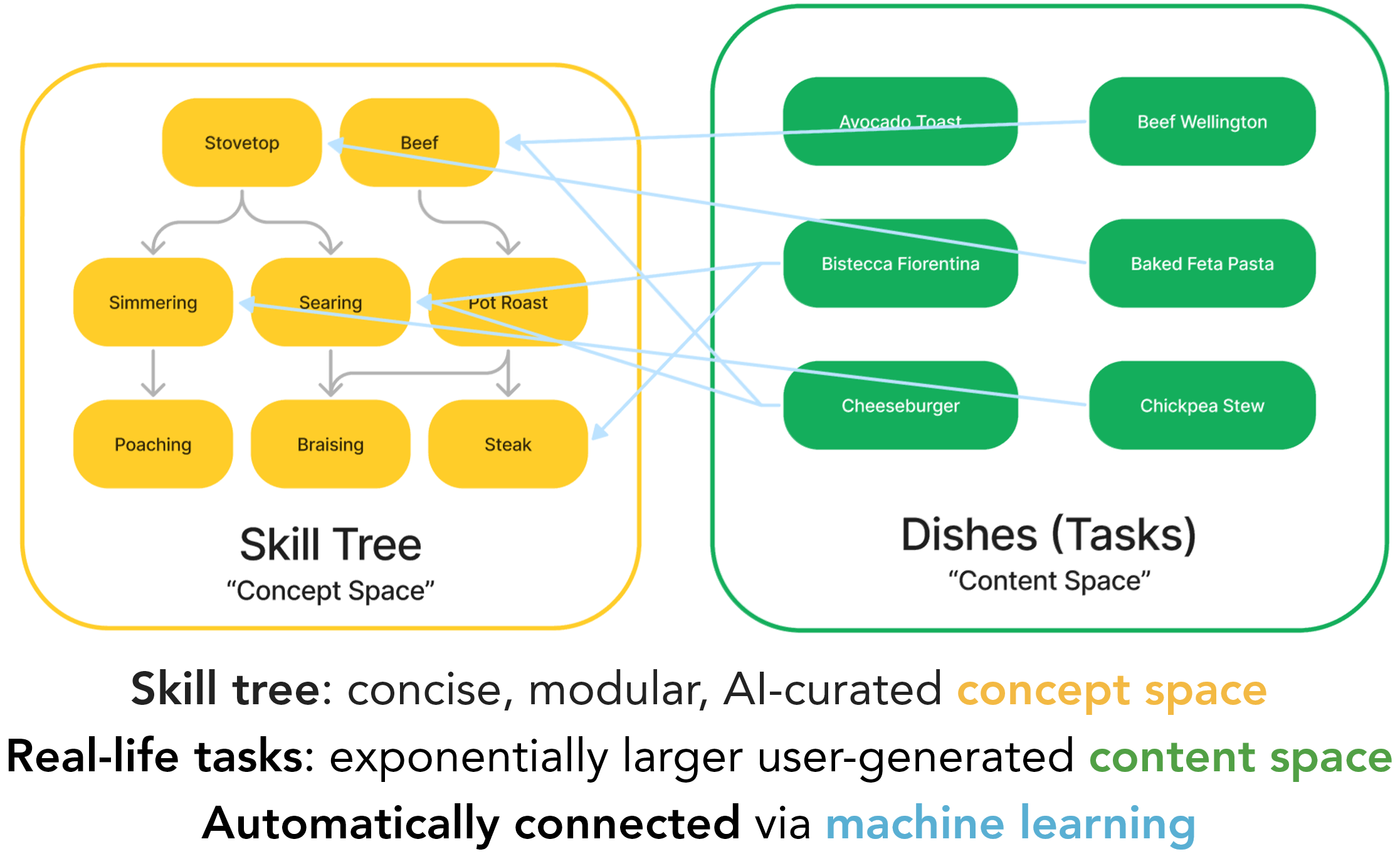 Skill trees are particularly powerful for cooking: a few thousand skills can become the foundation for millions of recipes around the world.