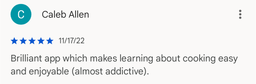 Learning to cook from disparate video content is particularly difficult because you canât search for what you donât know, and have no way to gauge your progressâa pain point that many beginners express as âI donât know where to startâ. Additionally, watching recipe videos on an unspecialized platform limits learning efficacy, and can be very frustrating if youâre trying to find a specific technique or level up in general.