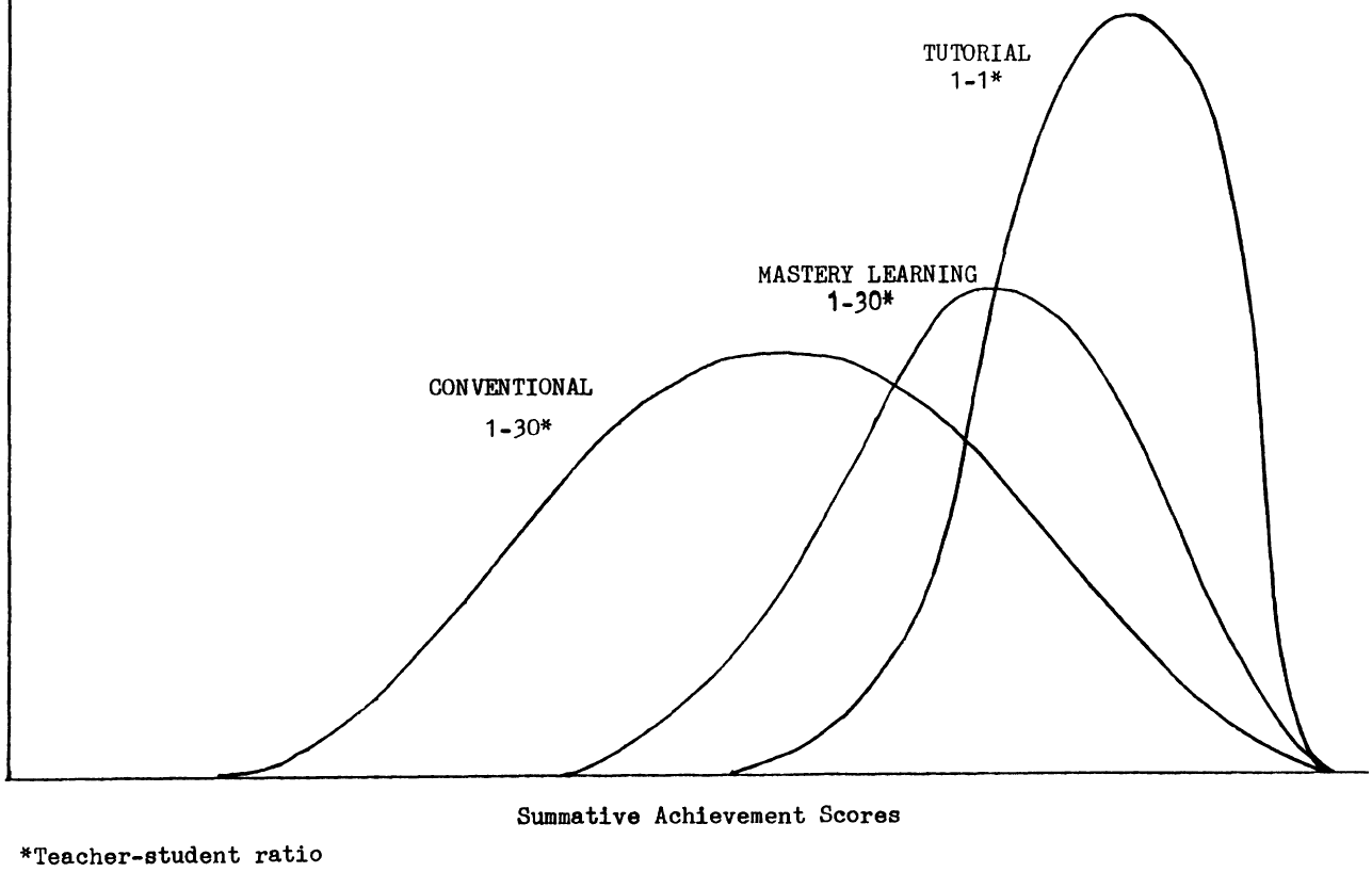 In 1984, Benjamin Bloom wrote a seminal paper2 in which he studied over 12 different ways to improve educational efficacy. One particular paradigm stood head and shoulders above the othersâit was so good that it took the median student to the 98th percentile: thatâs an astounding 2 standard deviations (Ï, or sigma) better.
