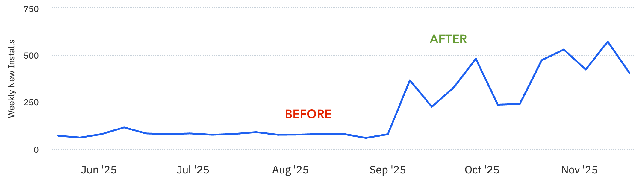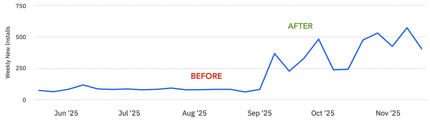 For us, the growth wasnāt just vanity metrics: it translated into real traction. Before the marketing began, we were adding around 600 new users every 8 weeks. Since launching our new content strategy, weāve added over 3,900 users in the same time frame: a 550% increase.