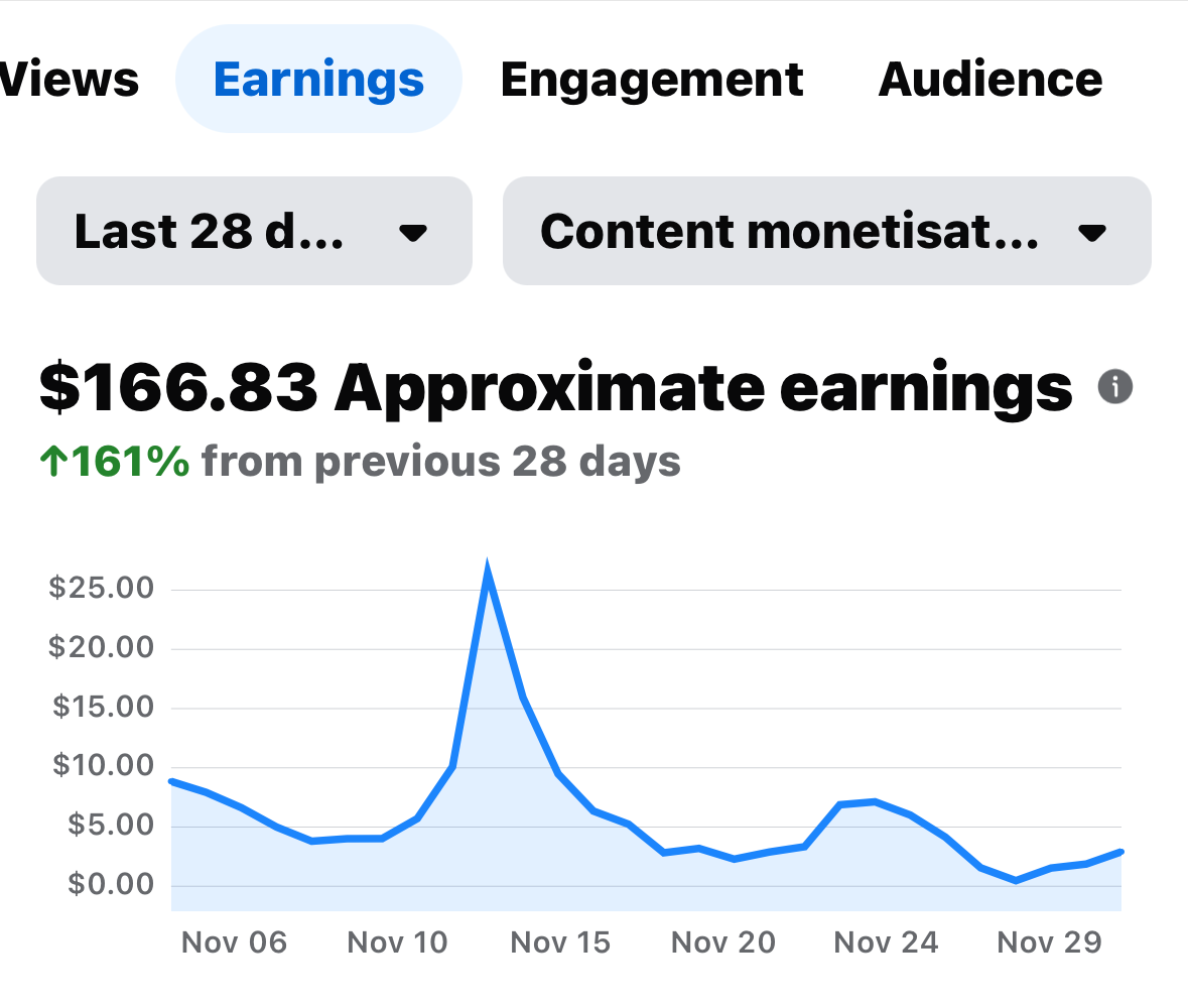 In the first month, we made $166. That might sound small, but itās compounding. Based on performance, weāre already trending towards $300ā$1,000/month from Facebook alone.